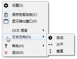 选择中文或日语时,应使用文本方向热键指定文本方向(垂直/水平/自动):Windows 键 + O。如果选择自动,则当捕获宽度大于高度的两倍时将使用水平,否则将使用垂直。文本方向也会影响从日语文本中剥离注音假名。对于日语,Capture2Text 将尝试自动剥离假名。