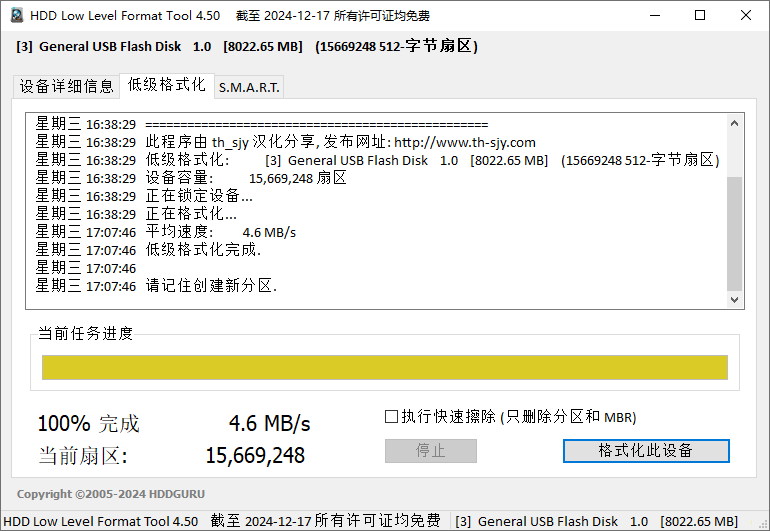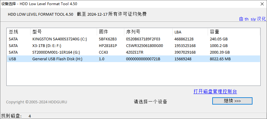 转载请注明:th_sjy 专注软件汉化和资源分享, » 硬盘低级格式化工具(HDD Low Level Format Tool)4.50汉化版